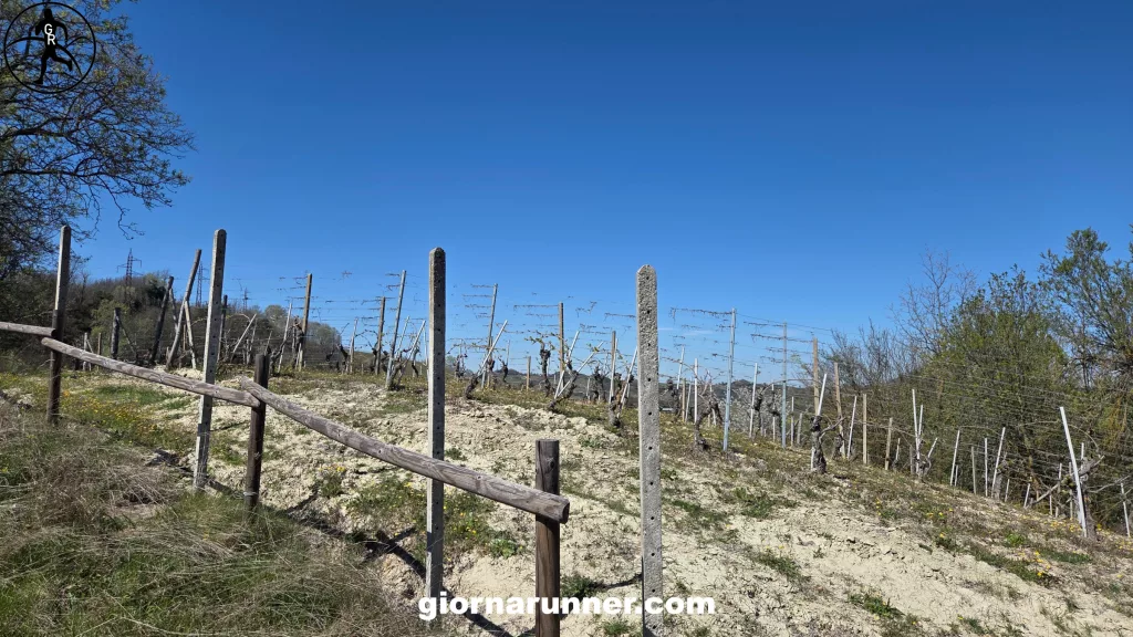 I vigneti dietro la panchina gigante.