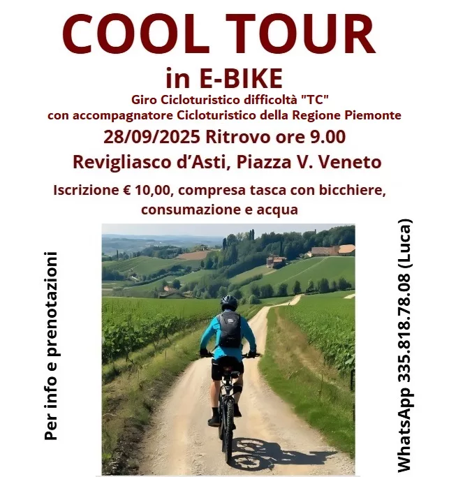 Ci sono sentieri che, metro dopo metro, raccontano la storia silenziosa di un territorio. Domenica 28 settembre, alle ore 9 da Piazza Vittorio Veneto a Revigliasco d’Asti, sarà il momento di riscoprirli insieme, con la pedalata cicloturistica in e-bike che viene proposta come una delle novità della terza edizione di Cool Tour.
