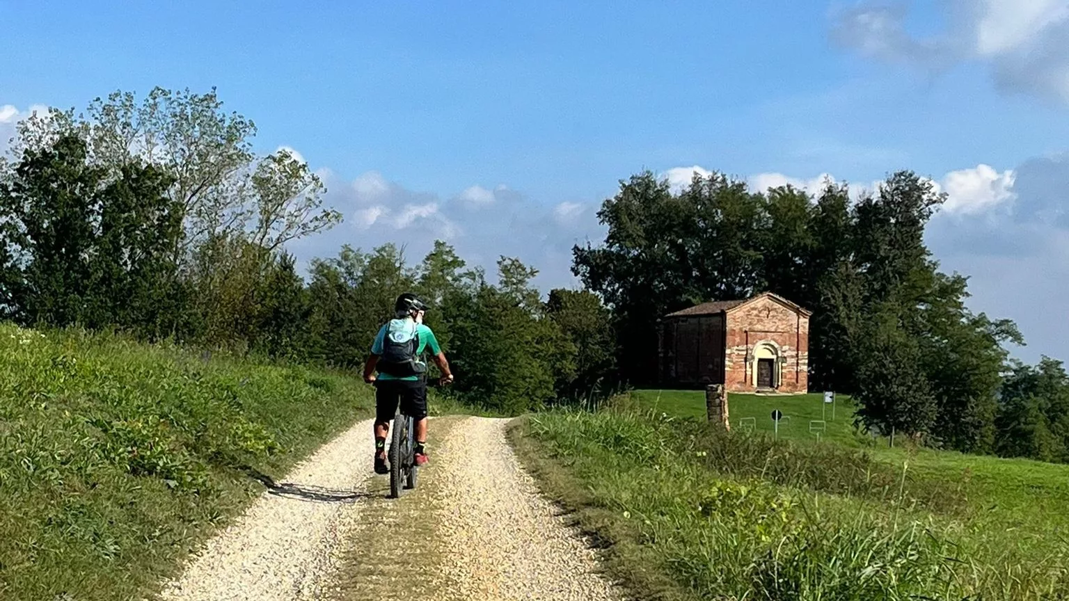 Sarà impossibile non notare le tante cappelle votive, che punteggiano il paesaggio come piccole luci di fede e memoria. La pedalata porterà a scoprire il verde intenso del suggestivo sentiero della Stra di Bosch, la tranquillità della vallata della Vandera, e ancora, ad innamorarsi della bellezza della Pieve di San Lorenzo a Tigliole, custode silenziosa di secoli di storia.
