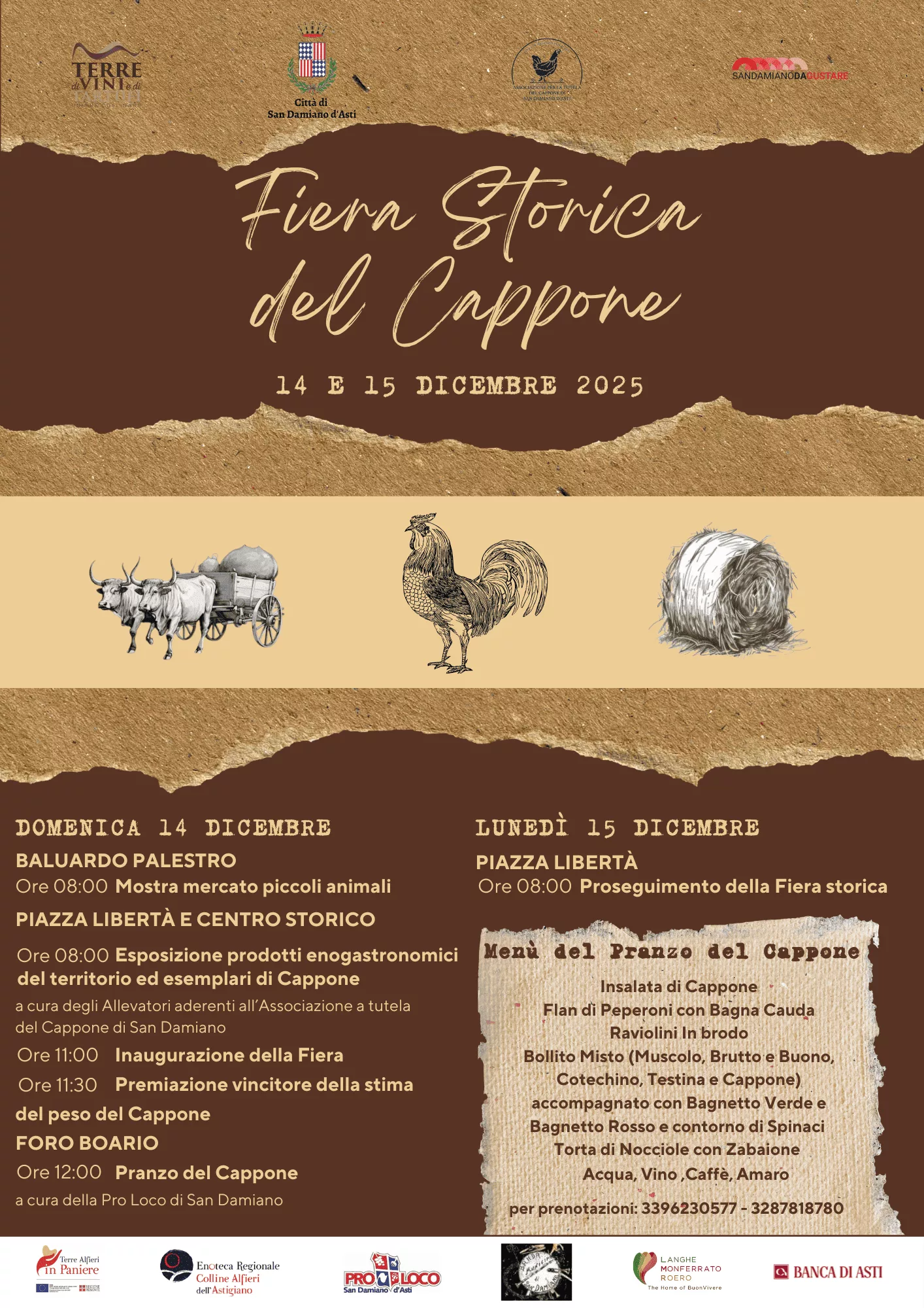Inoltre il 14 dicembre si svolge anche la tradizionale Fiera del Cappone, con eventi e mercatino dedicato al prodotto tipico locale per tutta la giornata.